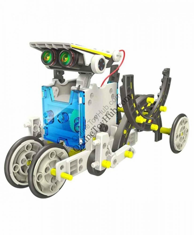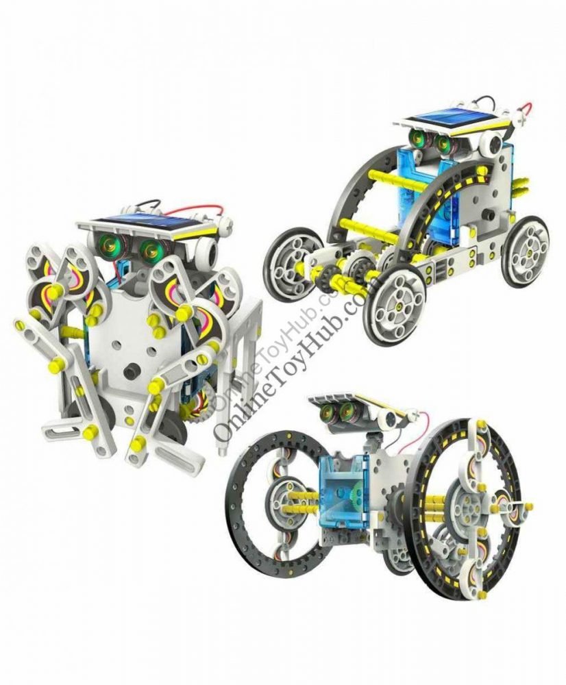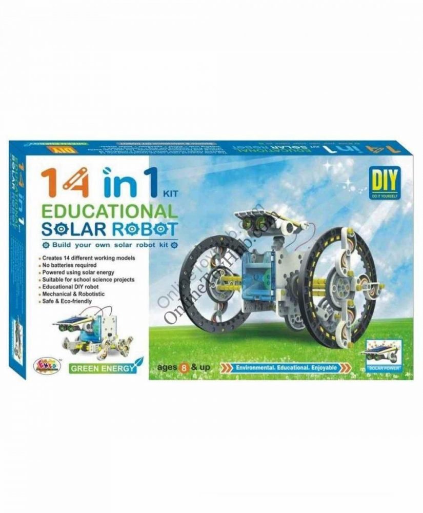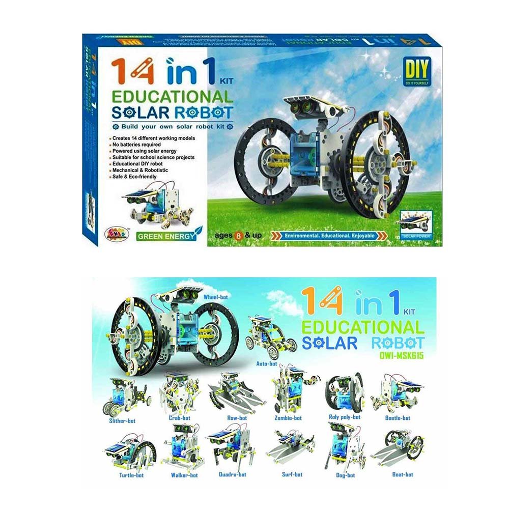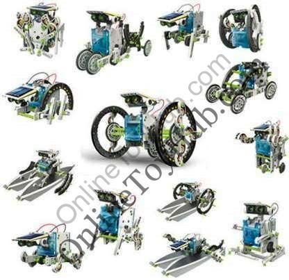 14 in 1 Solar Robot DIY Kit made Solar Energy fun like never before.? An Innovative Solar Science Kit that encourages children to exercise their sense of creativity and imagination. Build 14 different mini solar robotic toys that are fun to play with and educational. It feature all snap together Plastic parts (No Screws, No Tools Required), Solar Panel And Accessories. The robot kit provides unique accessories (included) and parts that make the robot move on land and water. With alternative energy playing such a pivotal role, there is no better time than now to start children on the path to learning basic concepts behind these technologies.