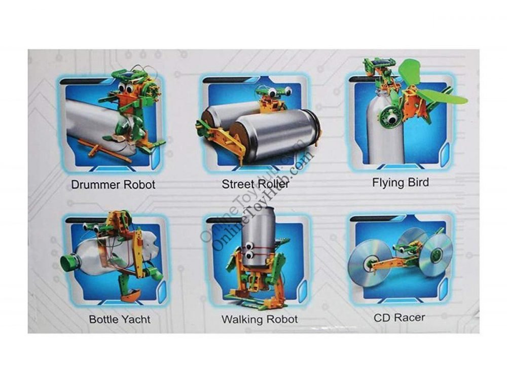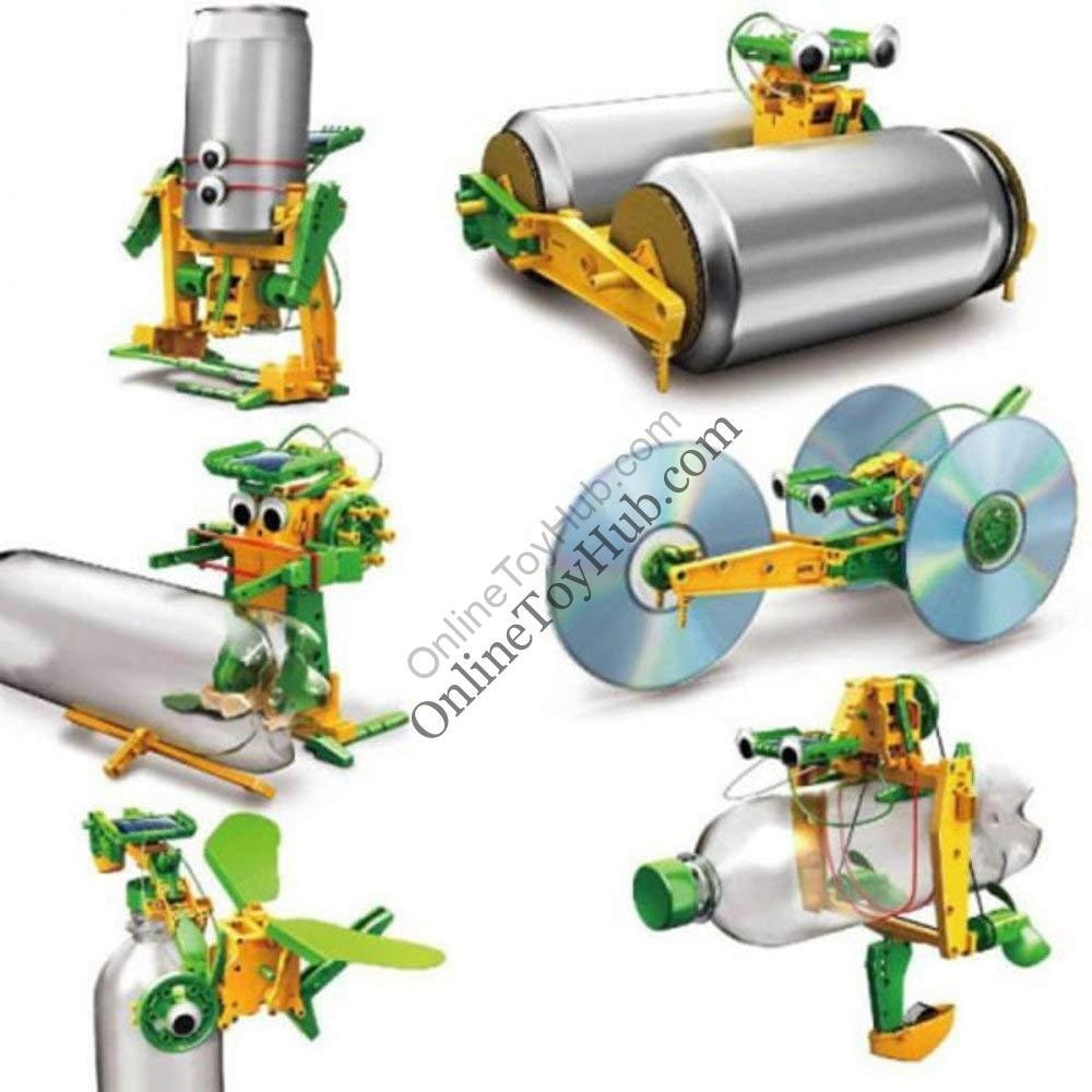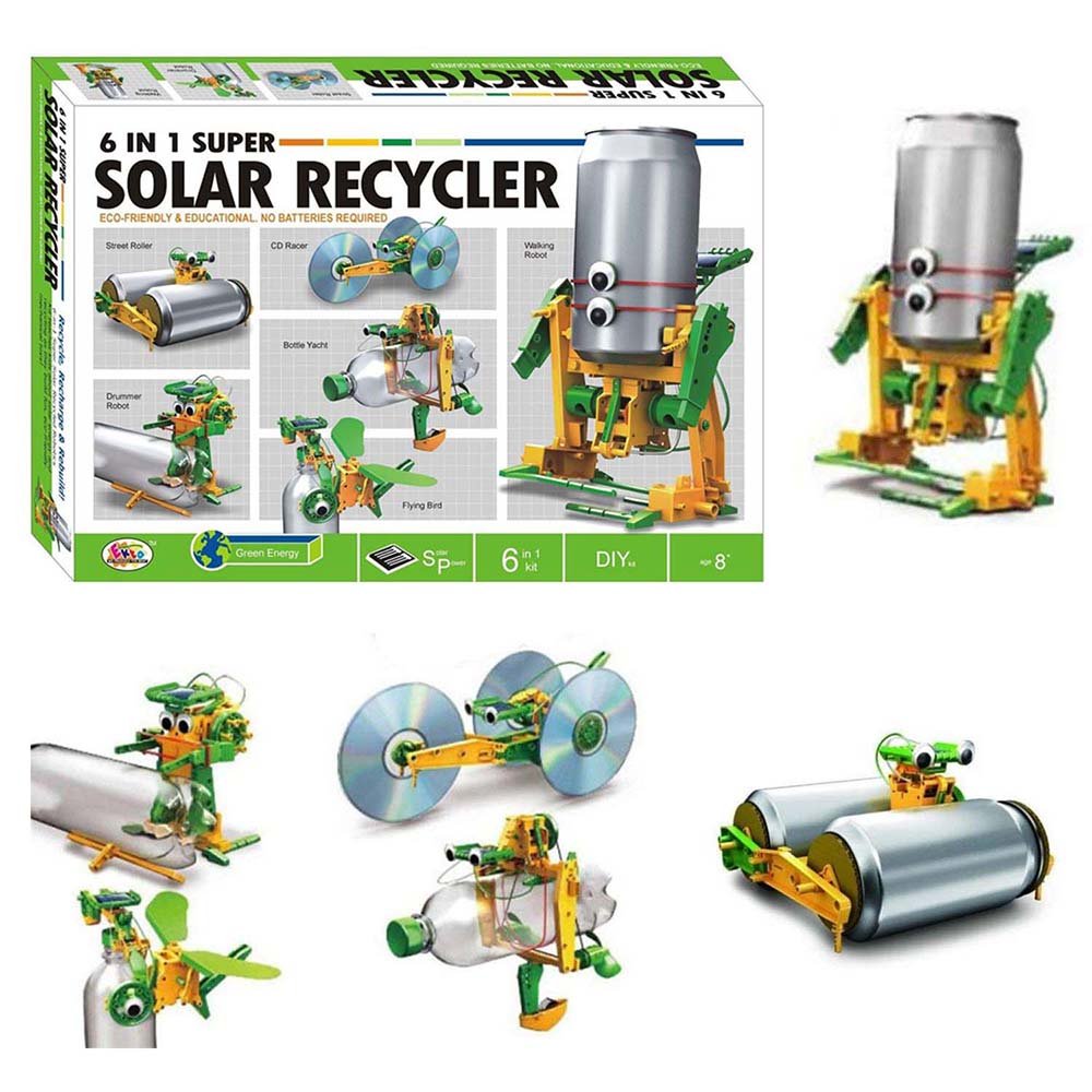 6 in 1 Educational Solar Recycle Dont throw the used empty water bottles, old Cds and DVDs and beverage cans. Instead of wasting them make six different models of solar robots by assembling all plastic parts along with solar panel and all other accessories as per instructions to build incredibly easy to assemble 6 different modules.