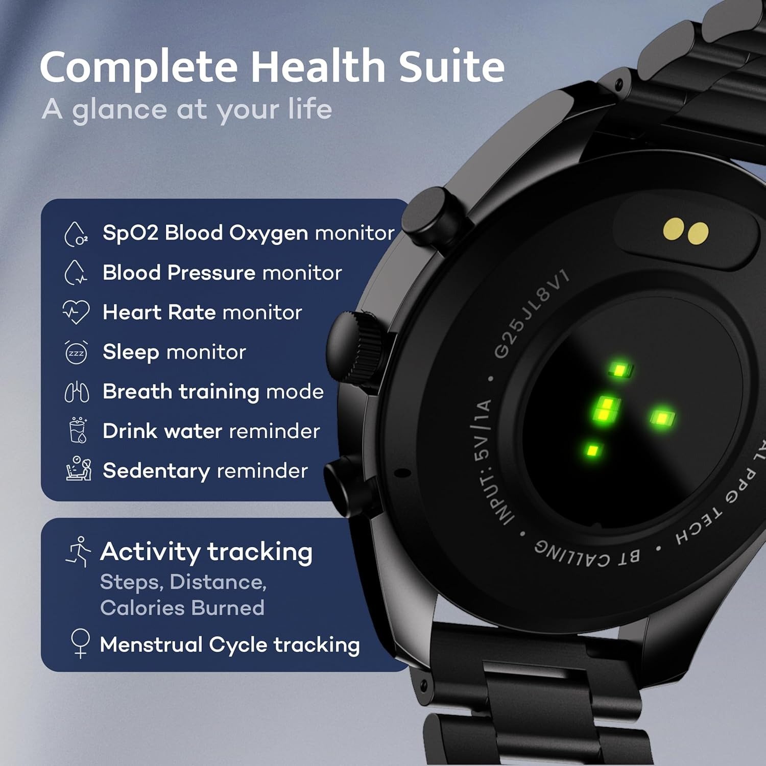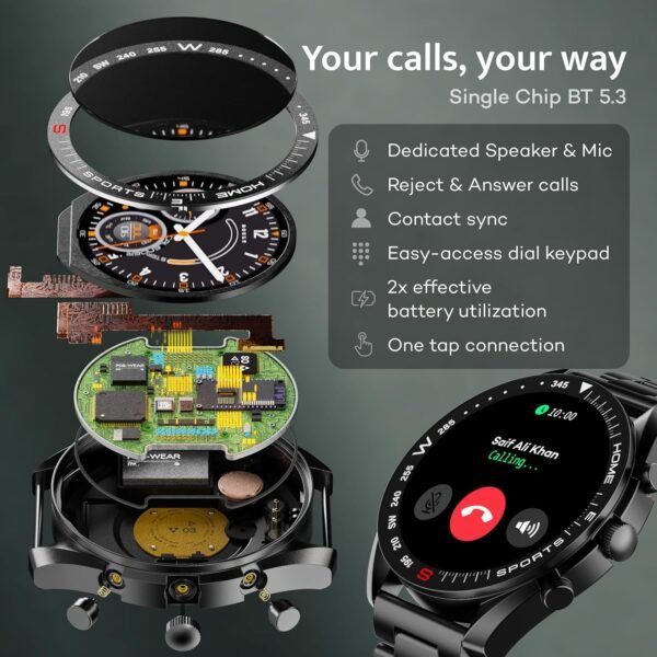 - Bluetooth Calling with Built-In Speaker & Mic: Make and receive calls directly from your wrist with dedicated Bluetooth calling functionality. The GOBOULT Mirage smartwatch makes communication easy, making it ideal as a smart watch for men and women who value convenience.
