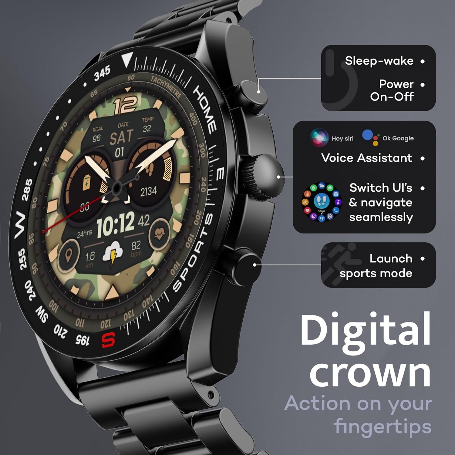 Boult Smartwatch Round dial For Boys Men Mirage Smartwatch with 1.39″(3.53cm) HD Screen, Premium Metallic Body, GOBOULT Health, BT Calling 5.3, Mini-Games and Digital Crown