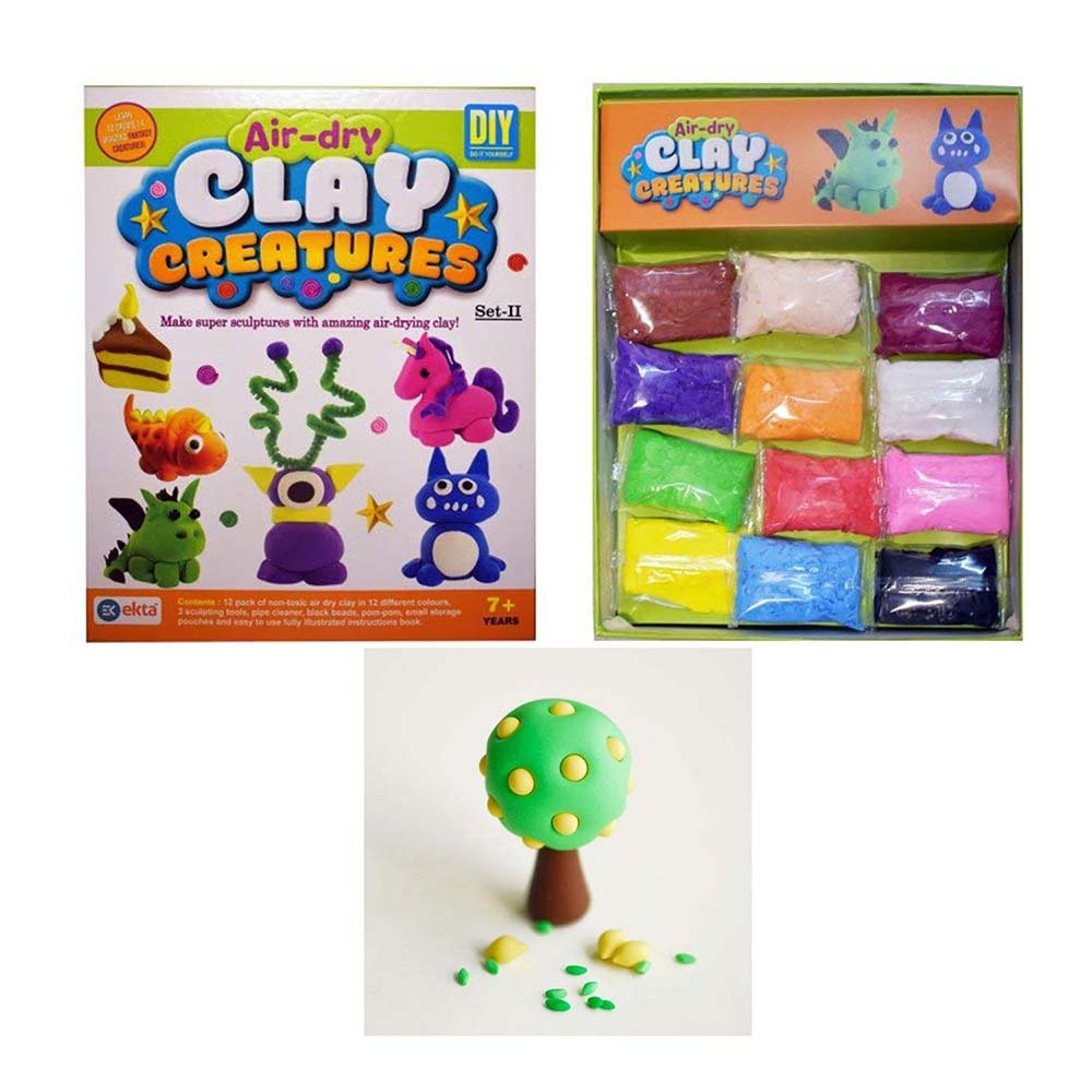 The kit includes easy-to-use air-drying clay in 12 different colors