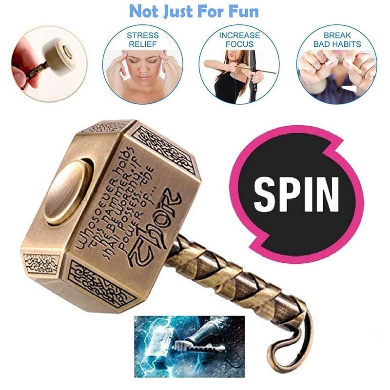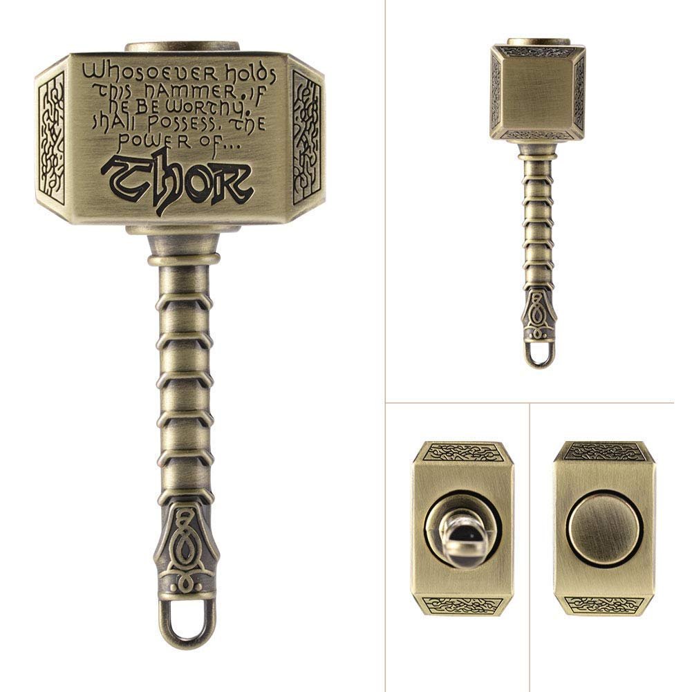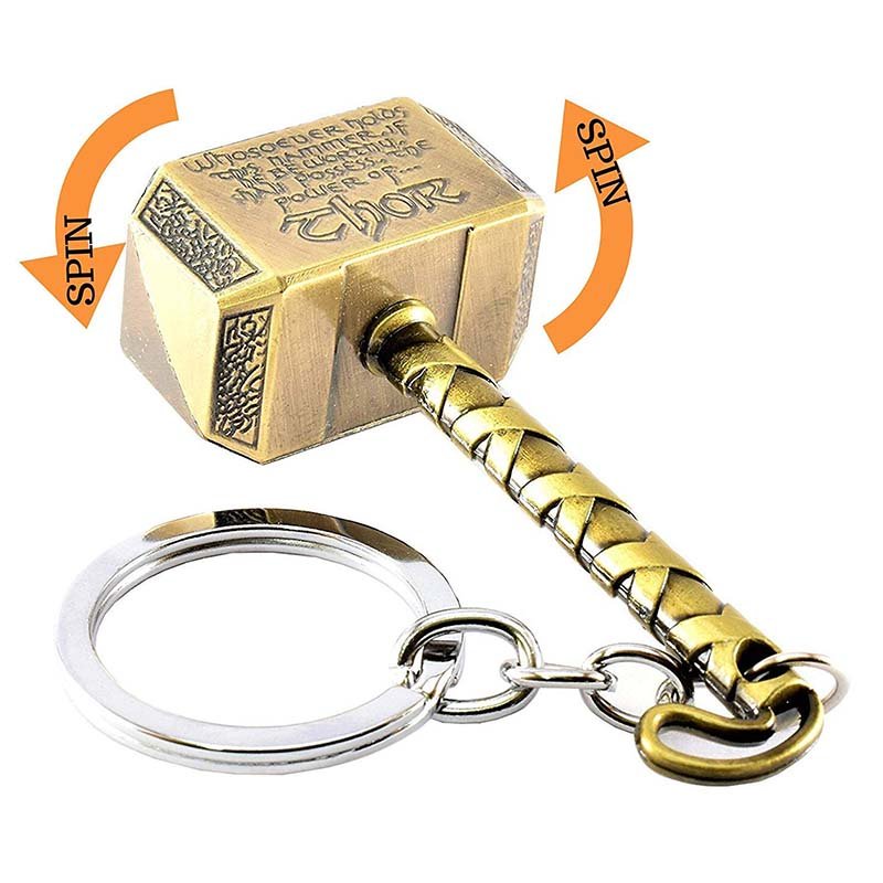 Marvel Key Ring Logo 3D Hammer Gold Color With Spin Function Keychain for Car & Bike