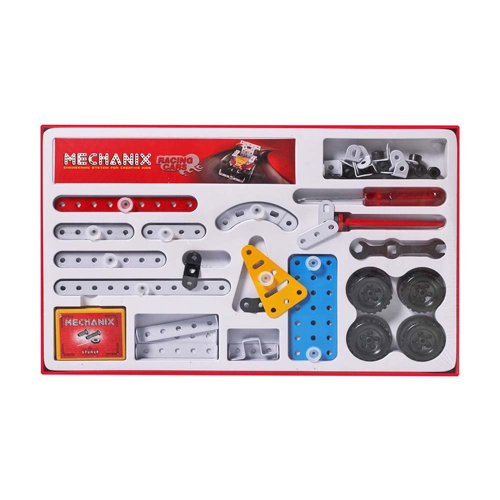 Learn the art of designing and construction through creative play. The box contains 155 pieces of versatile and reusable parts to give your child endless hours of fun. This mechanix series helps your child being creative, improves dexterity, reasoning and knowledge. This Kit Comes With All The Tools, And Parts To Build 15 Different Models, One At A Time. After Completing These 15 Models, The Builder Can Use The Nuts Bolts.